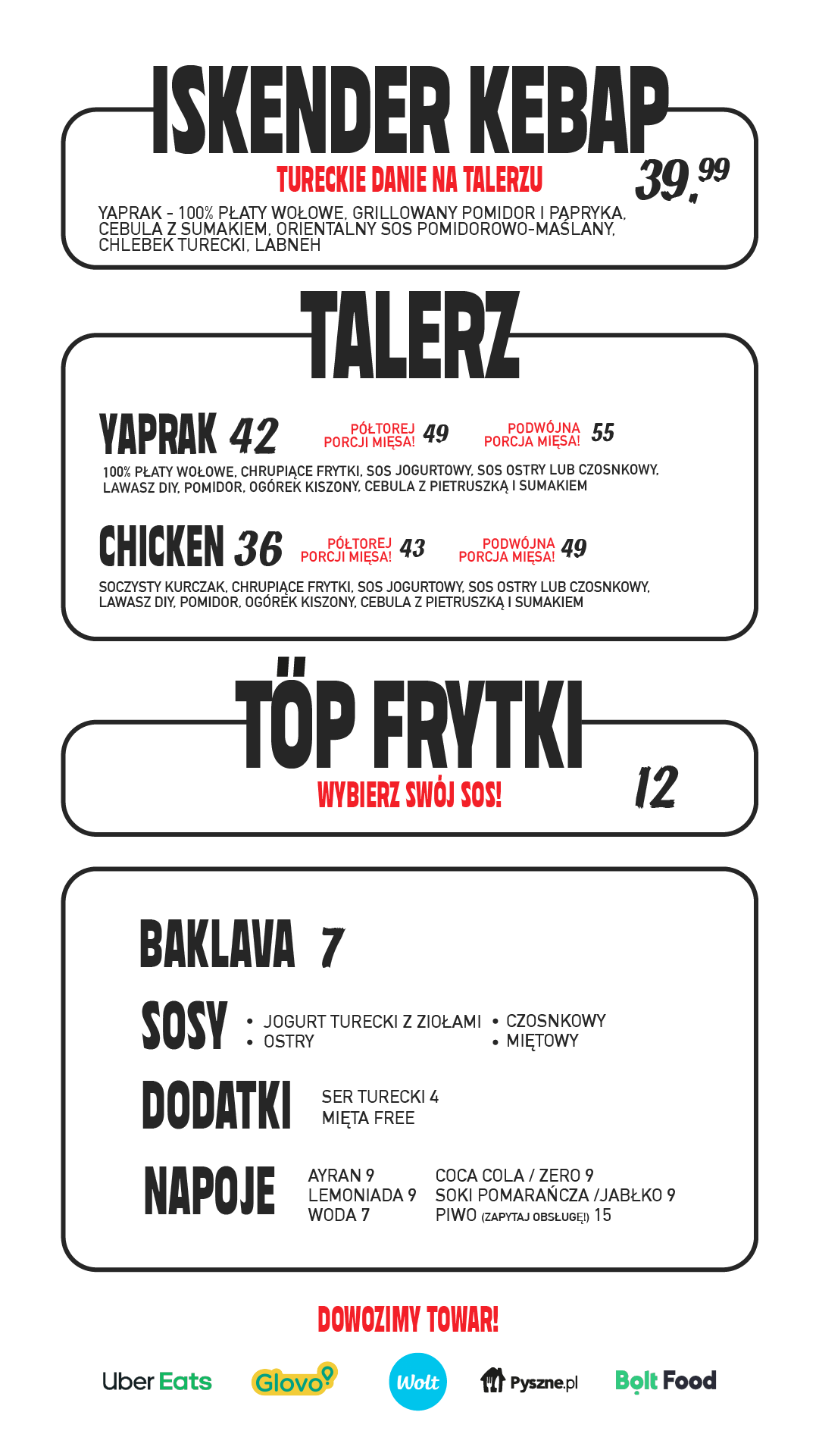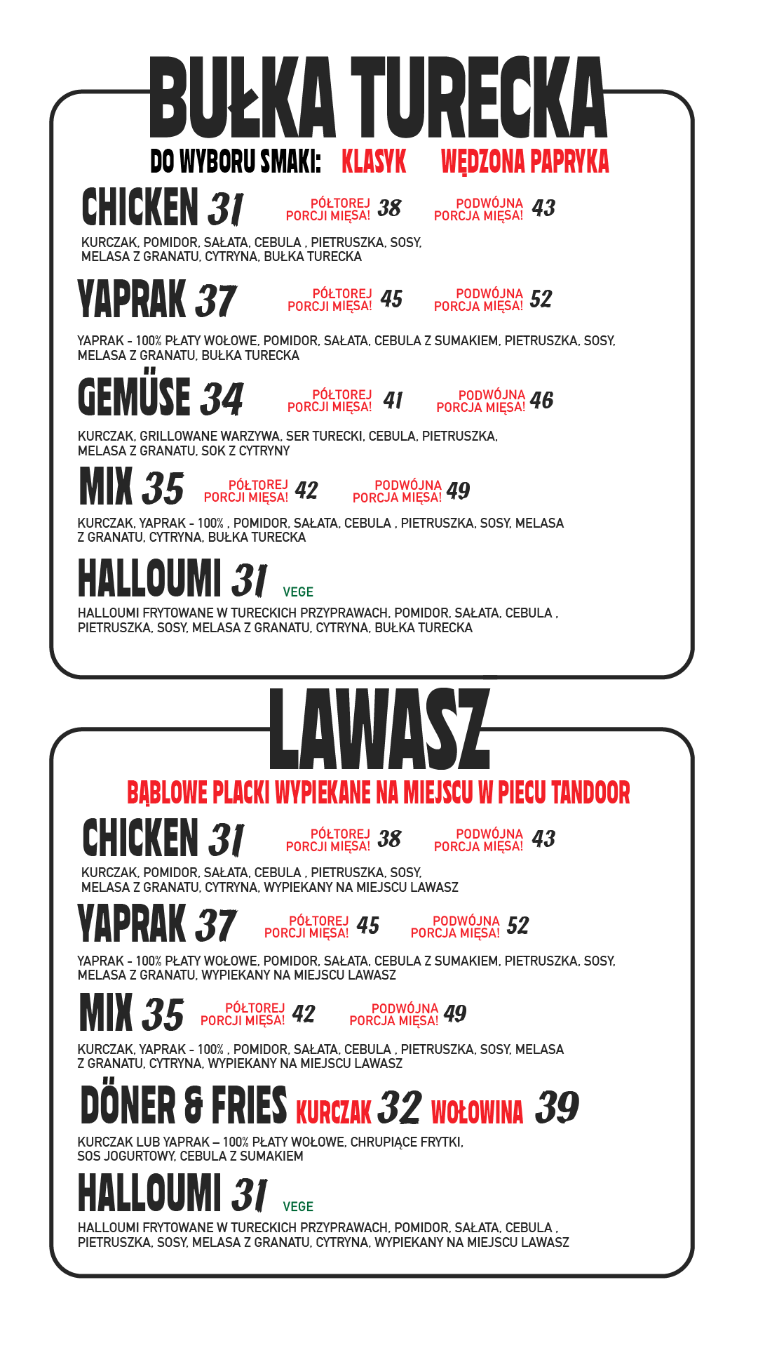 Mięso to nasza tajna receptura. Kurczaka marynujemy w jogurcie i przyprawach i przekładamy warzywami. Płaty soczystej wołowiny przekładamy mięsem baranim, co dodaje wyjątkowości doznań. Bułki i lavashe wypiekamy na miejscu w piecu Tandoor. Sosy kręcimy codziennie własnoręcznie. Są niepowtarzalne!